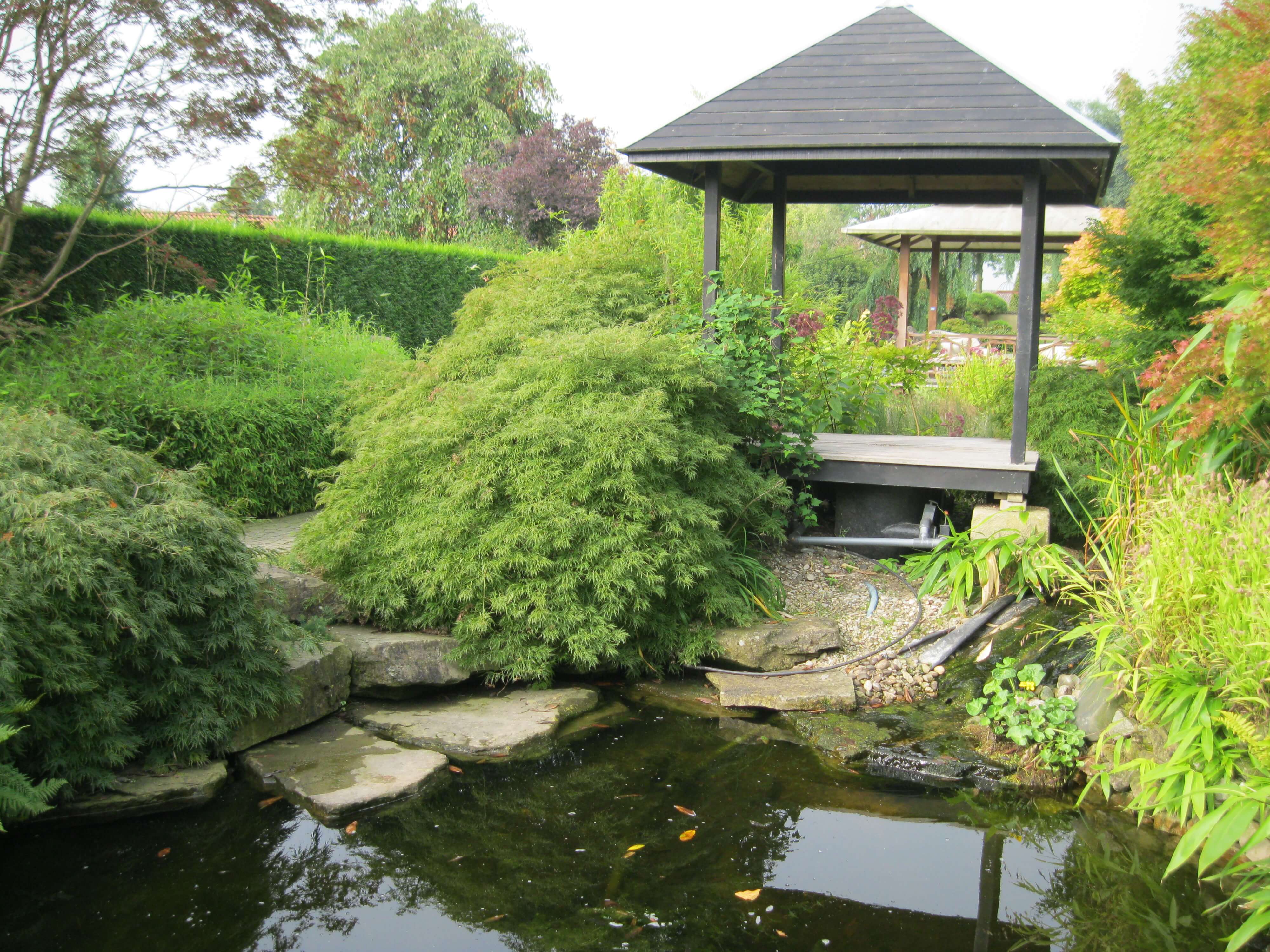 schöne Teichanlage mit Pavillon, asiatisch angehaucht.